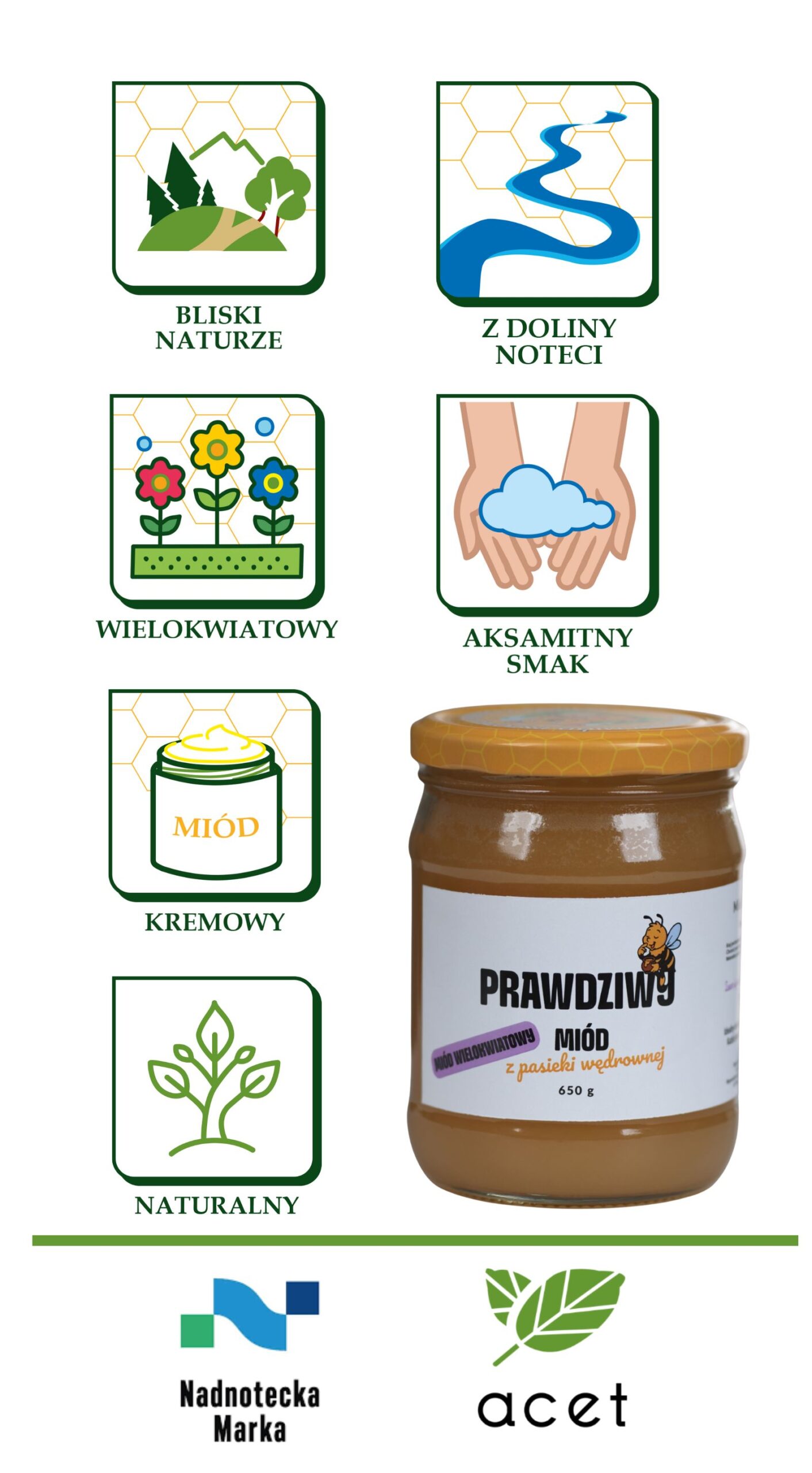 Nasz miód wielokwiatowy rodzi się w Dolinie Noteci, w otoczeniu Puszczy Noteckiej. Tutaj pszczoły zbierają nektar w rytmie natury, a my dbamy, aby każdy słoik zachował to, co w przyrodzie najcenniejsze.