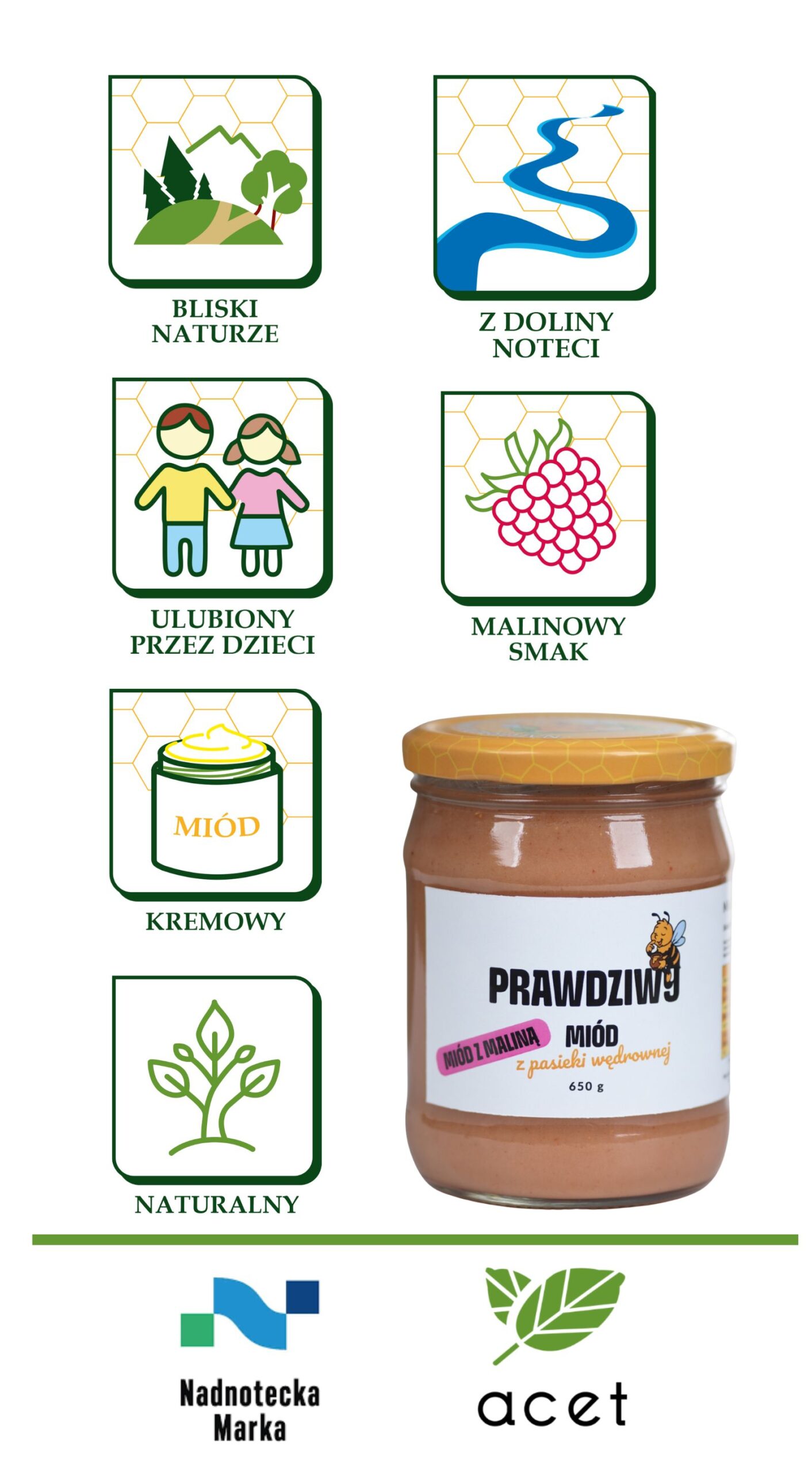 - Naturalne pochodzenie – zbierany lokalnie, w pasiece w Dolinie Noteci.