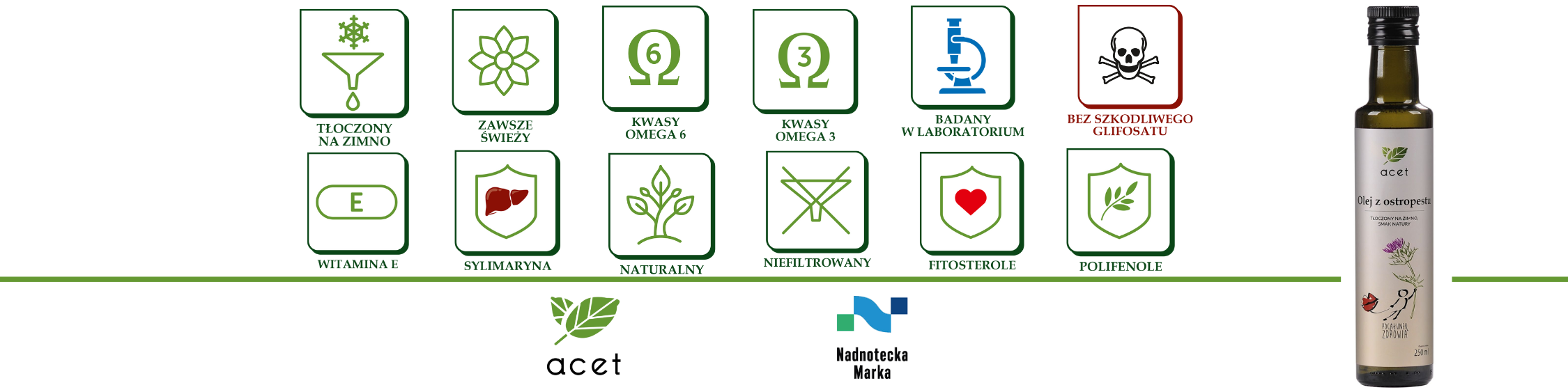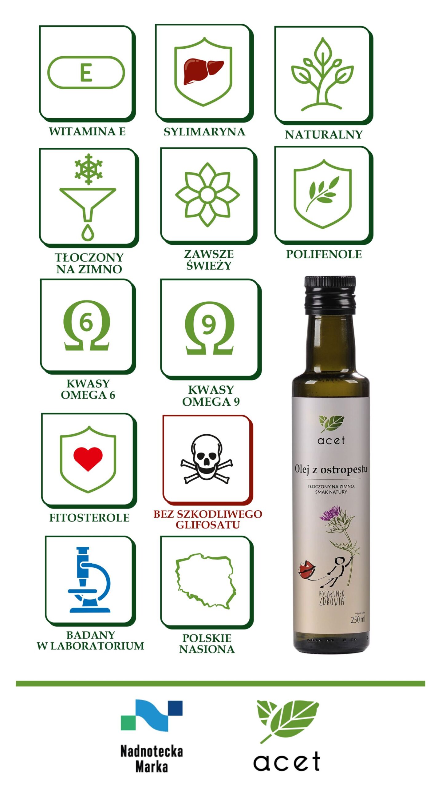 • Zbadany na witaminę E, polifenole i sylimarynę.